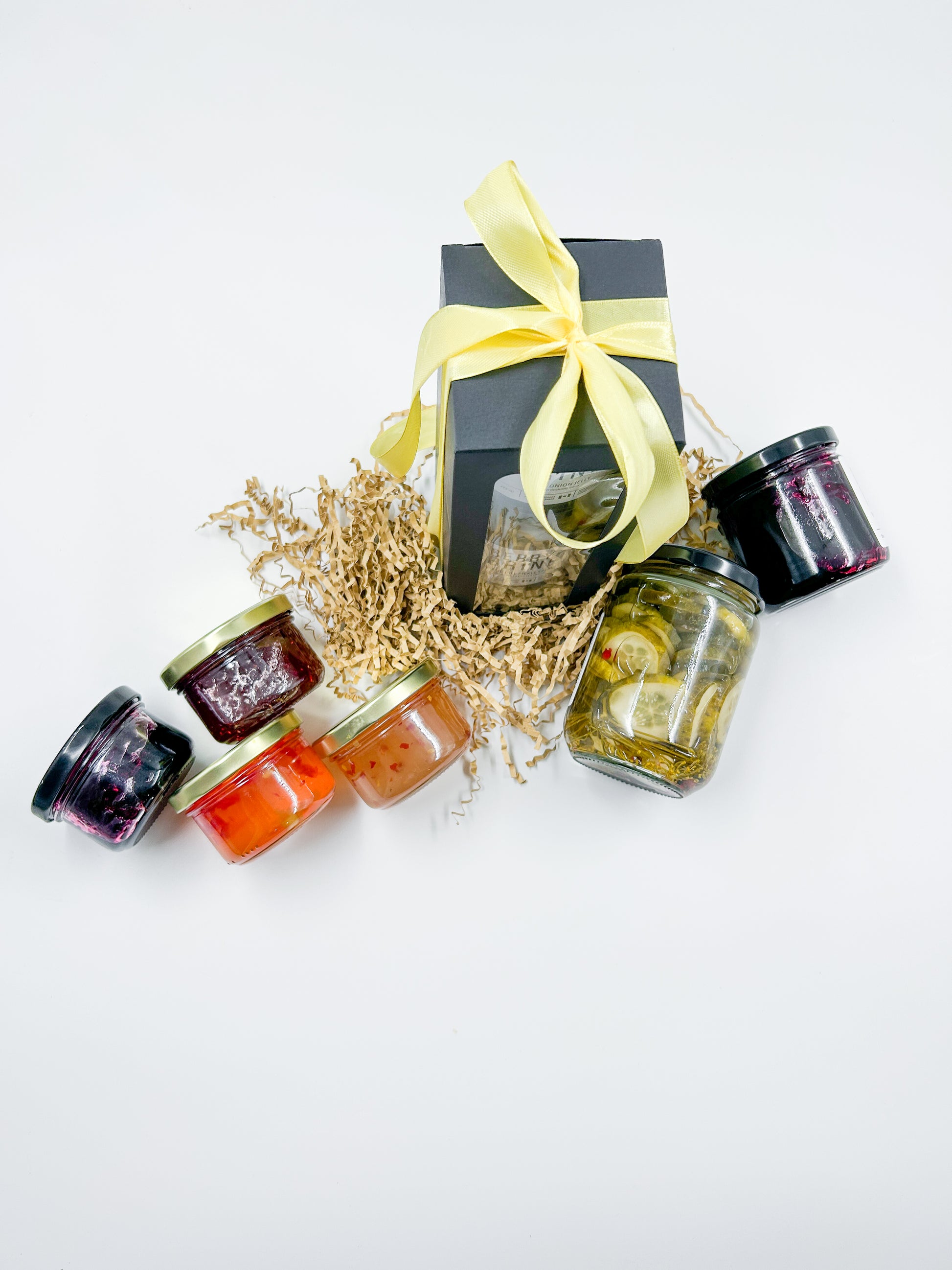 A deliciously unexpected pairing from Berry & Brine, this gift set brings together sweet, spiced berries and crisp, tangy pickles in one beautifully wrapped package. Inside, you’ll find: